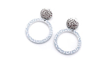 • Load image into Gallery viewer, Blue Cutout Circle White Print Dangles