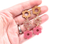 They feature acrylic flower charms paired with wood flower-shaped ear posts.