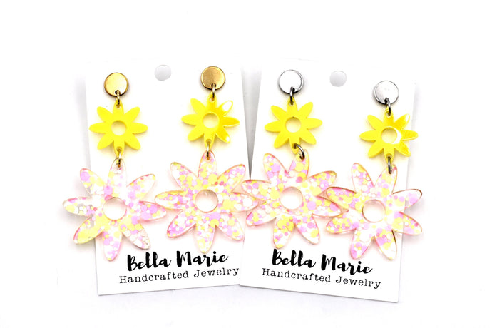 Gold Daisy & Pearl Asymmetrical Dangle Earrings