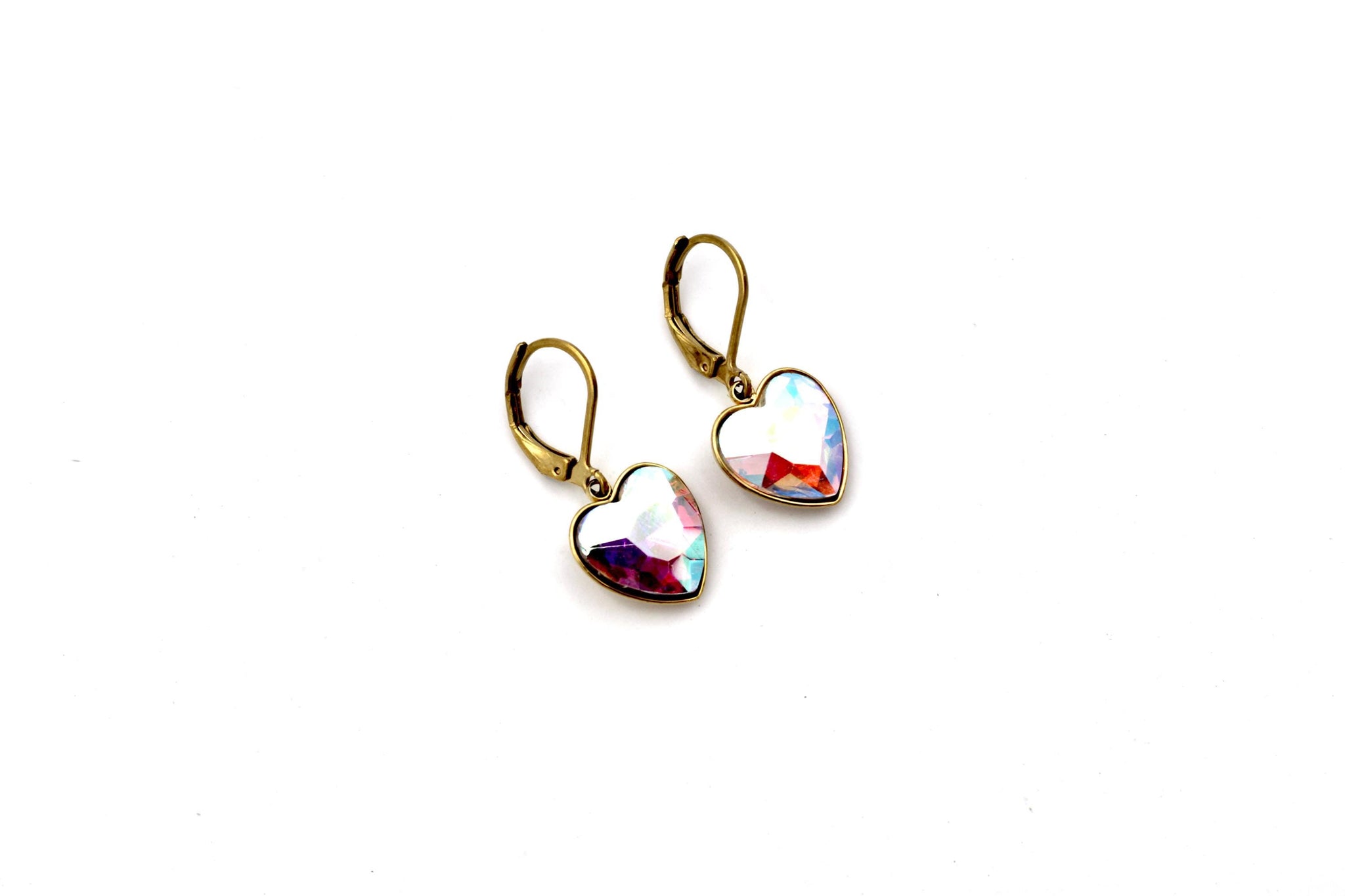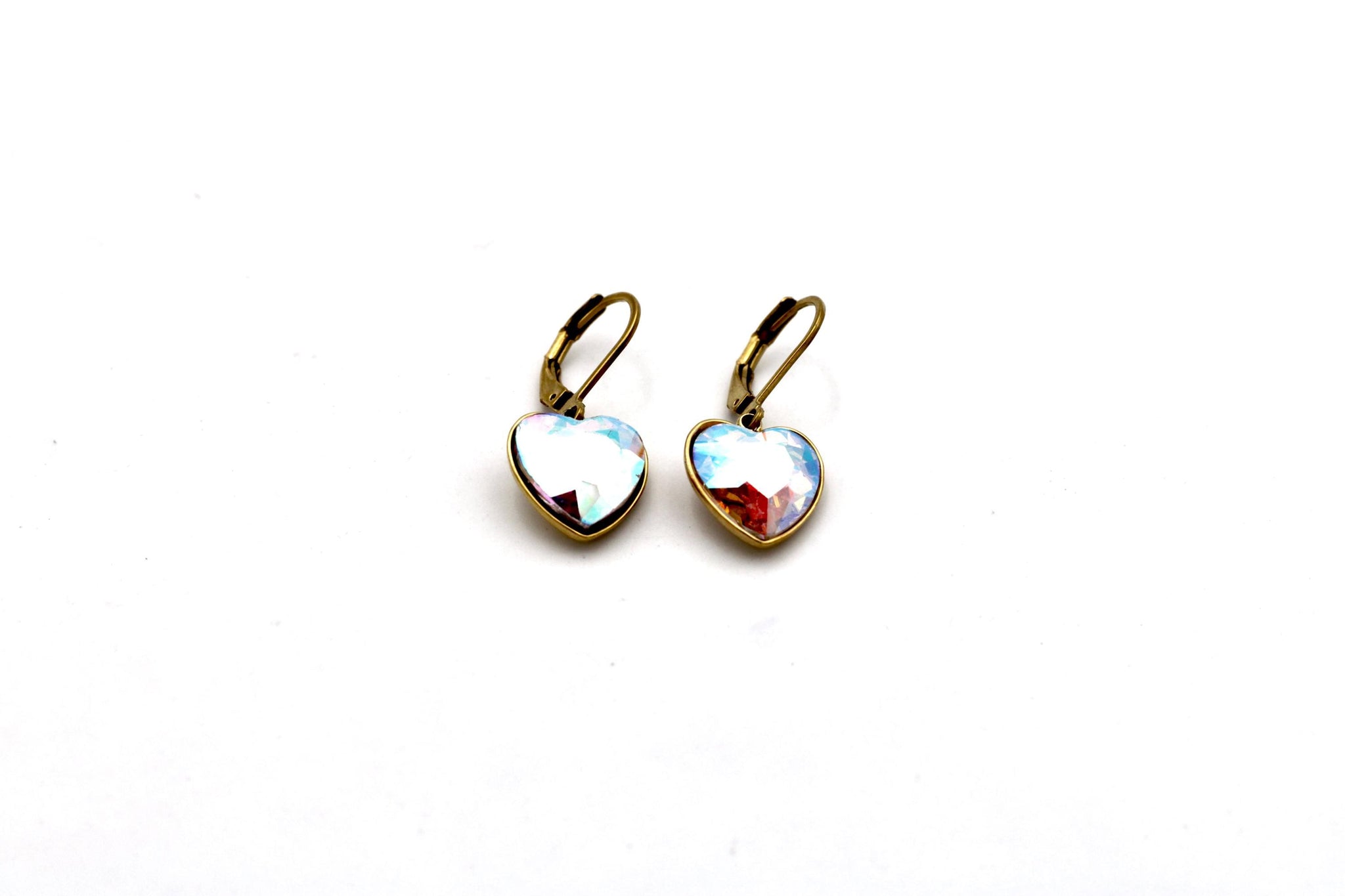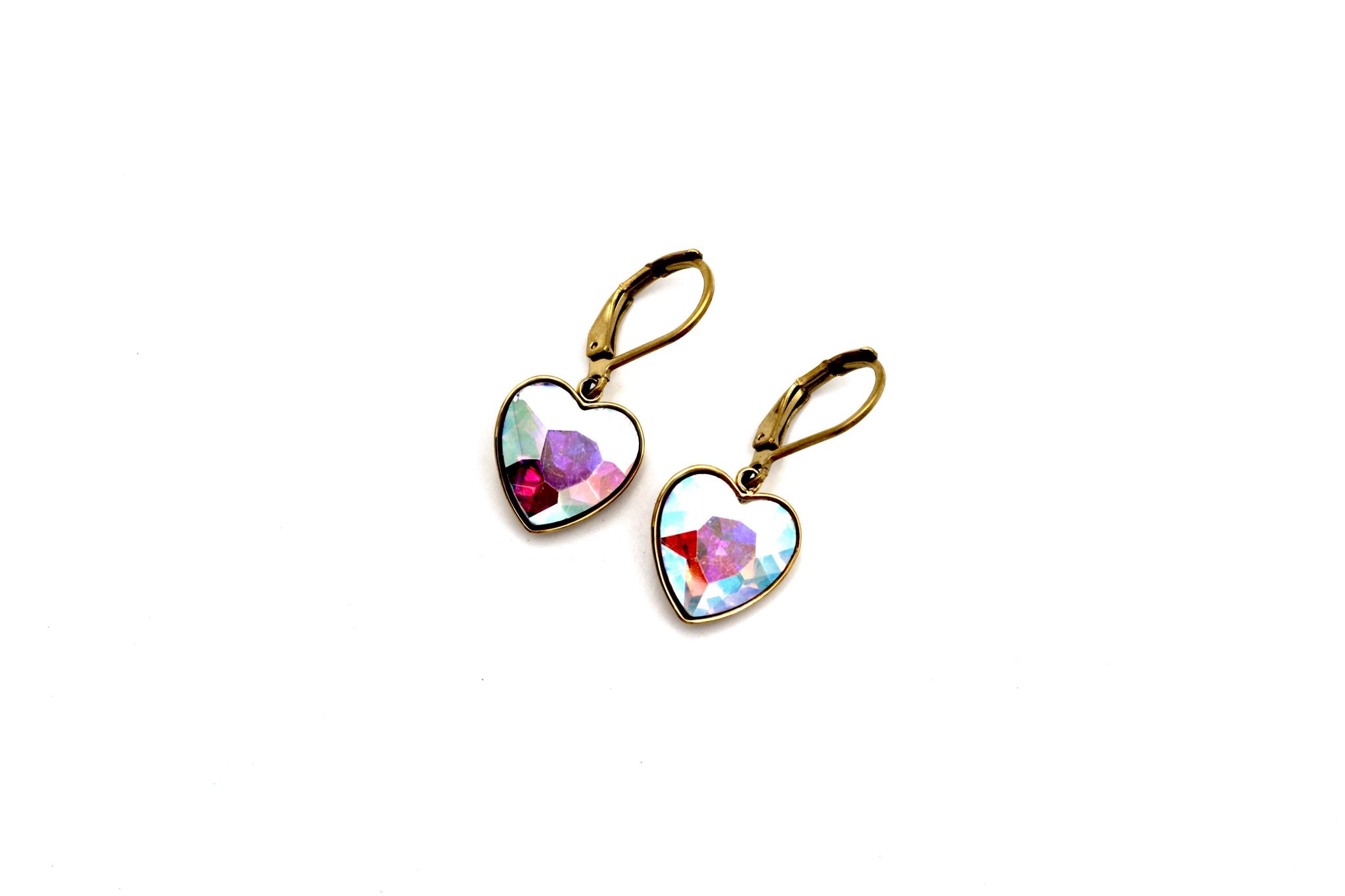 Add a gorgeous pop of shimmer to your everyday look with these iridescent heart rhinestone earrings, designed to catch the light beautifully from every angle. With flashes of pink, blue, purple, and aqua, these earrings bring a dreamy touch of sparkle while remaining easy to wear.