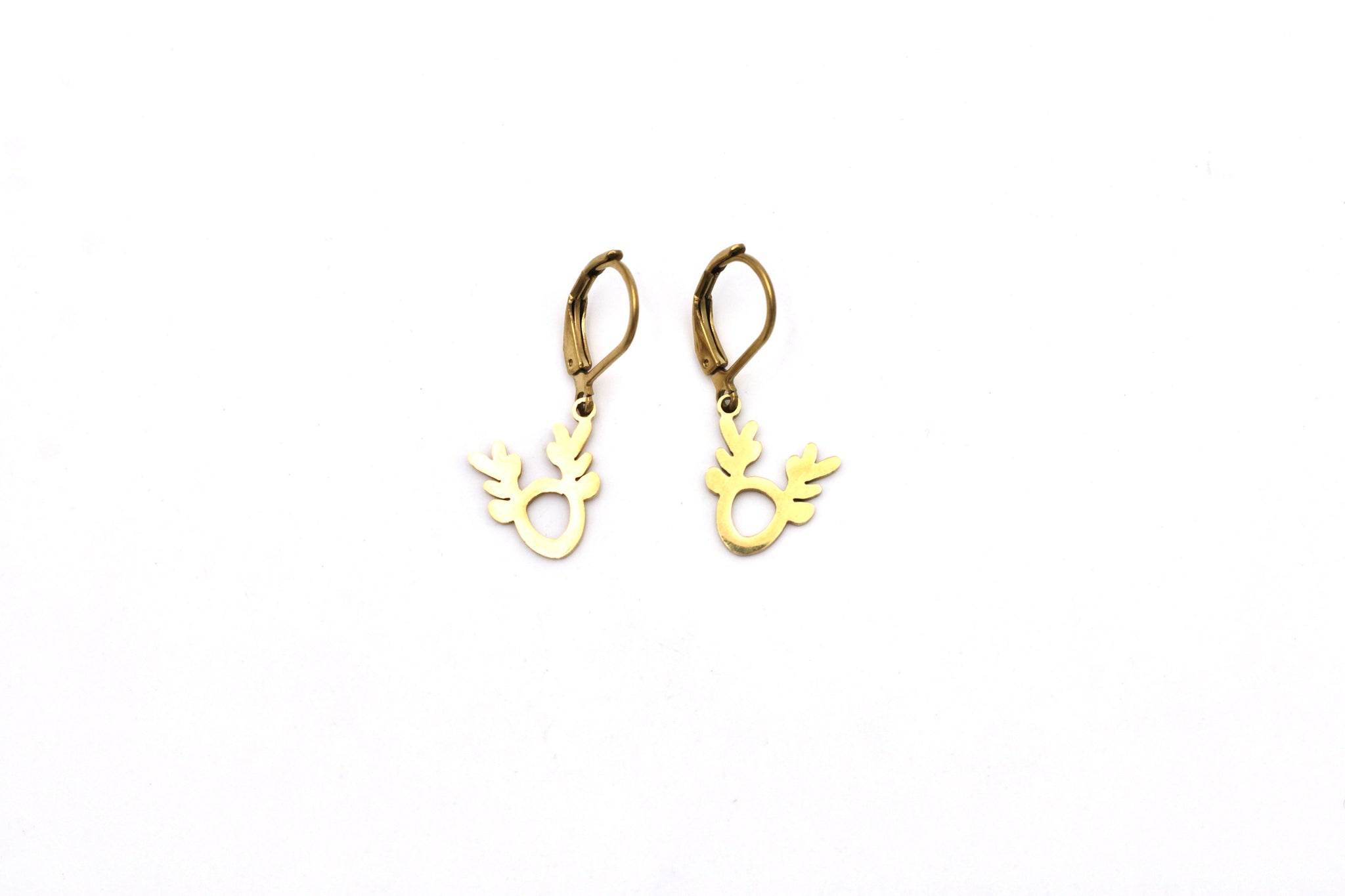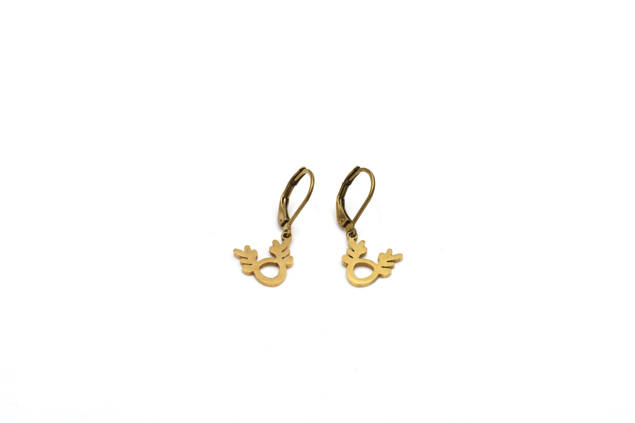 They feature stainless steel reindeer charms paired with a stainless steel lever back style hoops.