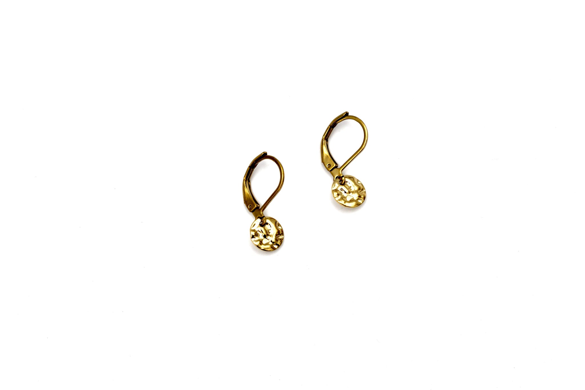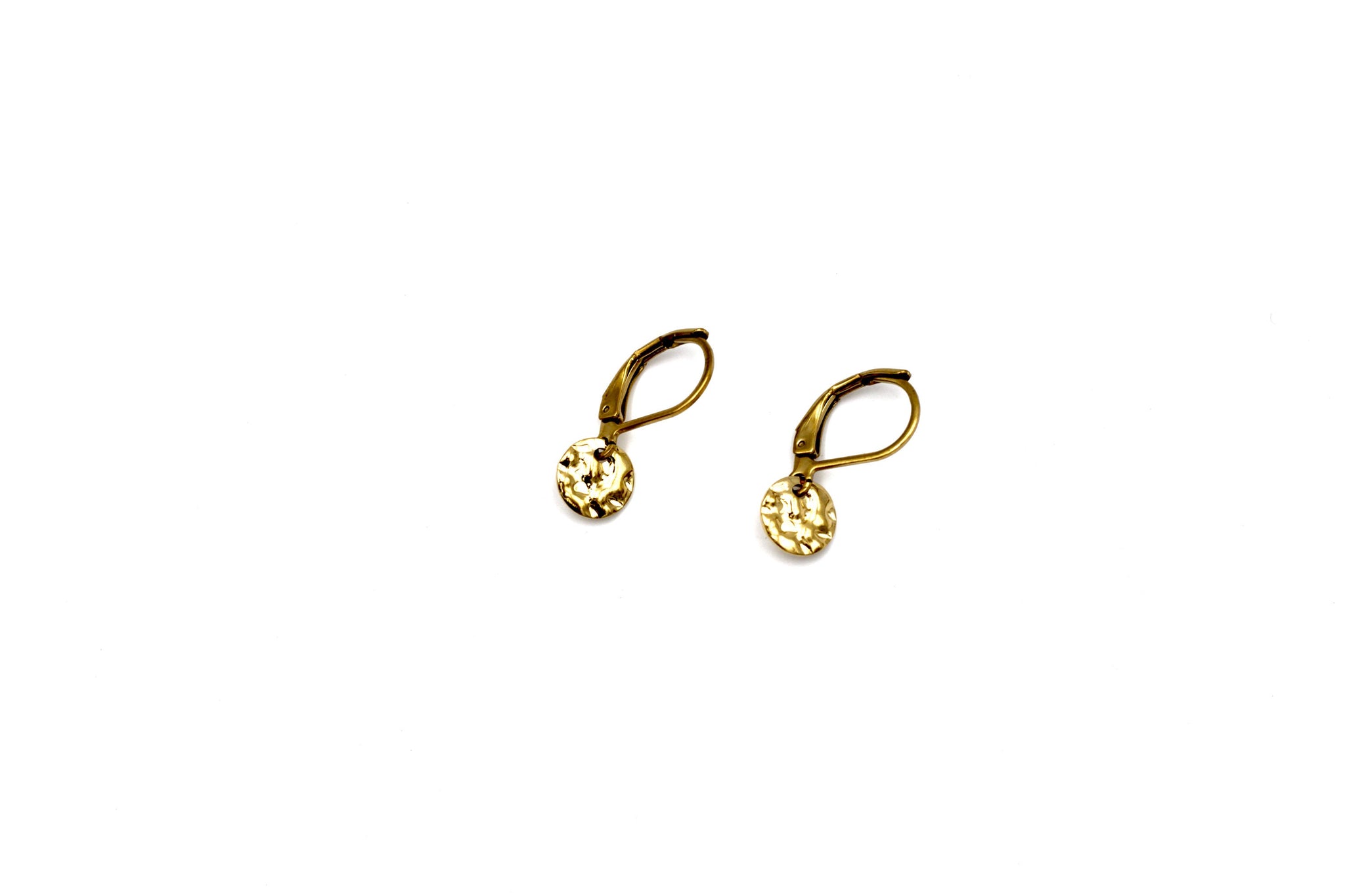 Designed for comfort and security, these earrings feature lightweight textured circle charms and lever back closures. This ensures that your earrings stay securely in place, allowing you to move with confidence and showcase your style without worry.
