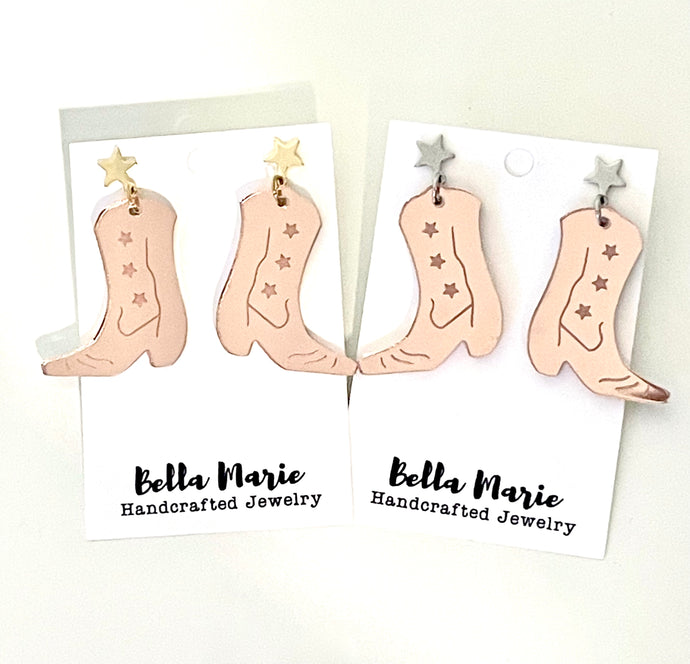 Rose Gold Mirror Acrylic Cowgirl Boot Dangles